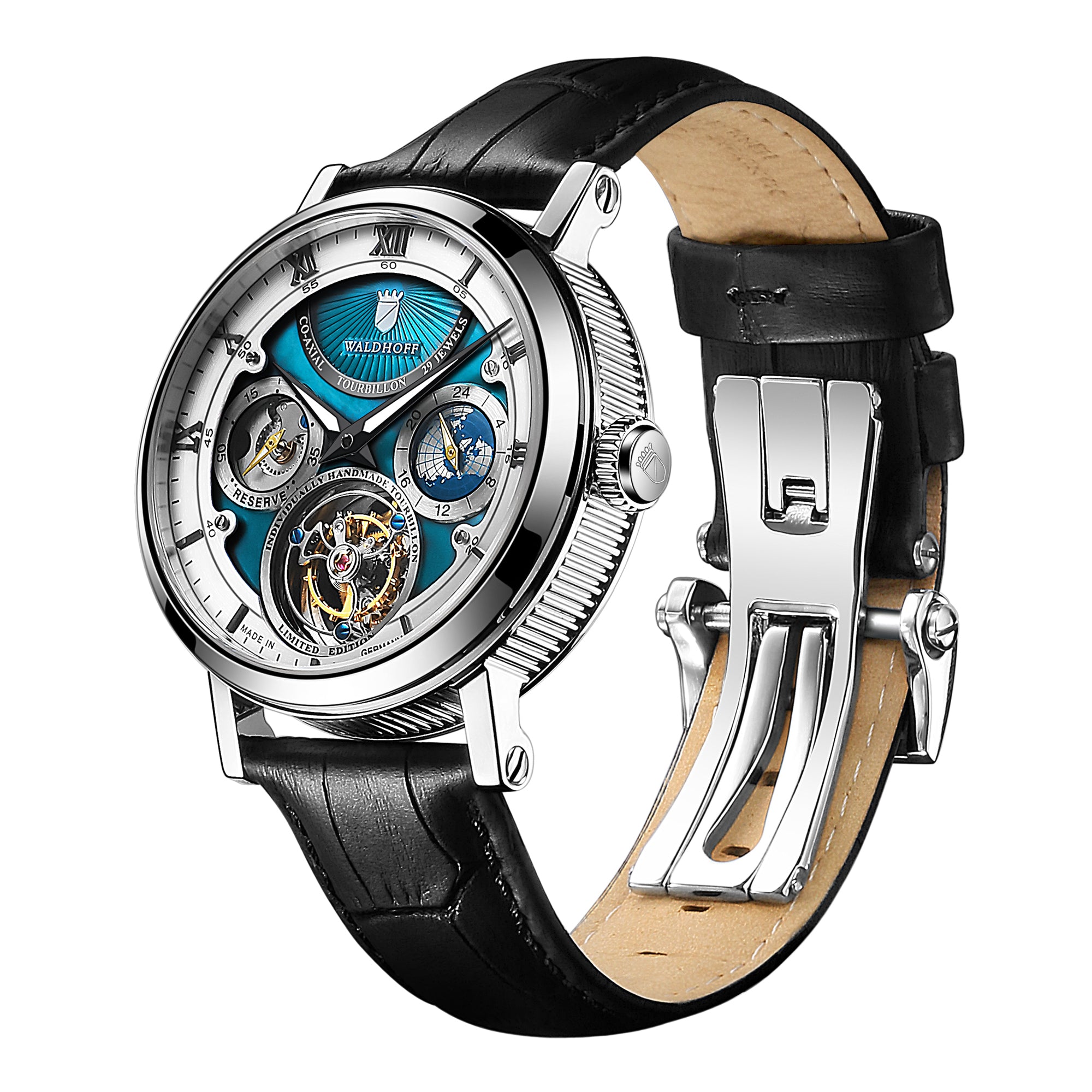 Black leather with deployant buckle