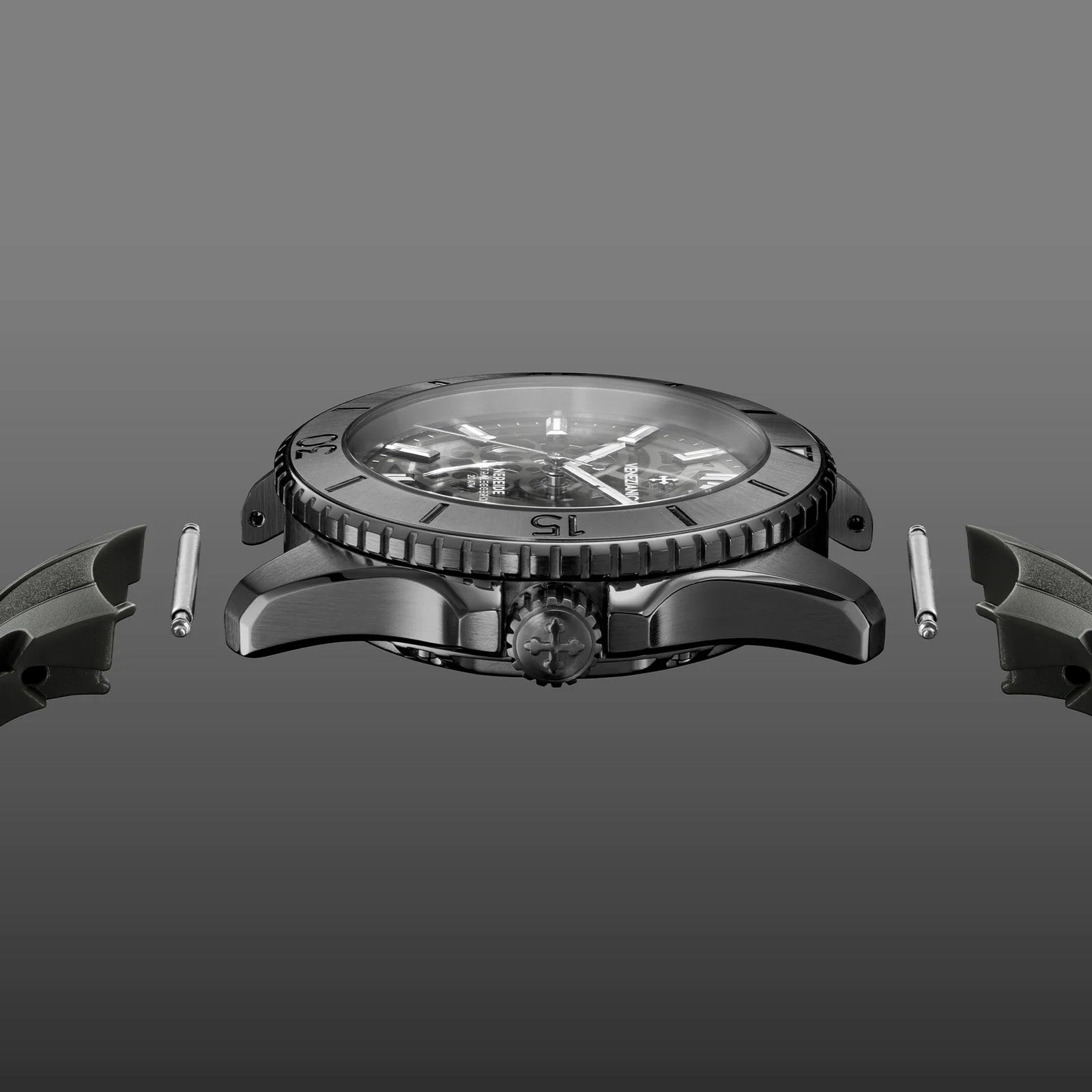 Engraved caseback secured by 6 screws