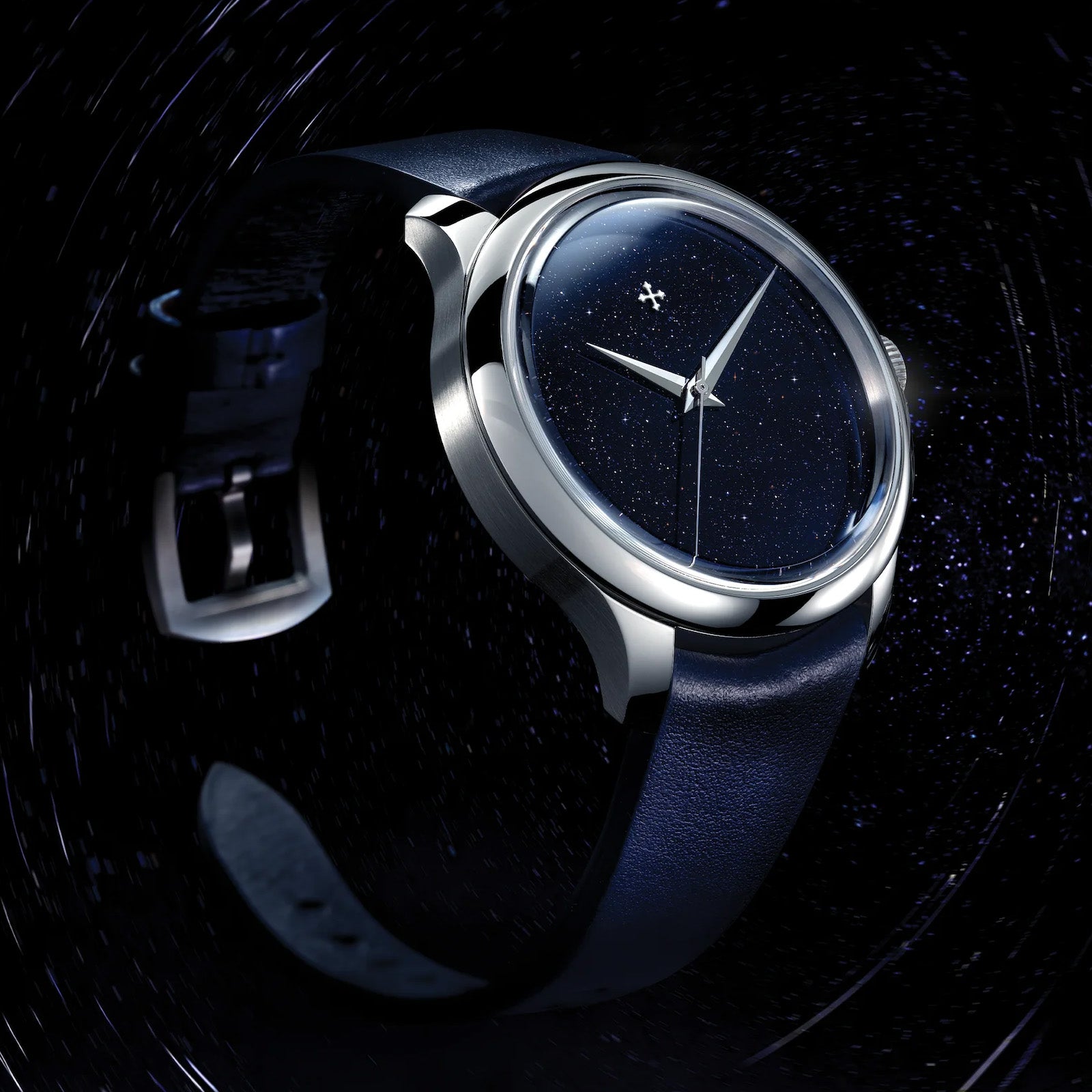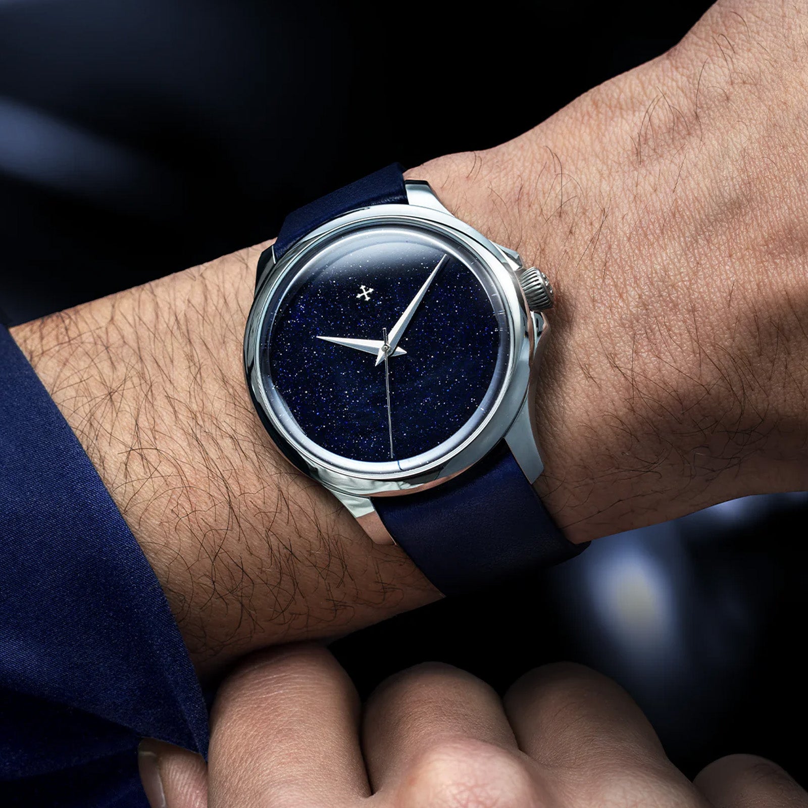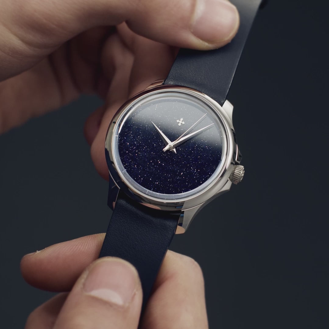 Aventurine, used in this Redentore model, is a fine glass material discovered in Venice in the 17th century by the artisans of Murano. It’s known for its characteristic sparkle, reminiscent of a starry sky, achieved by adding tiny copper fragments during the production process. A detail that makes each dial unique, inspired by Venetian tradition.