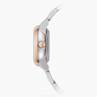 Stainless steel case with rose gold PVD coated bezel