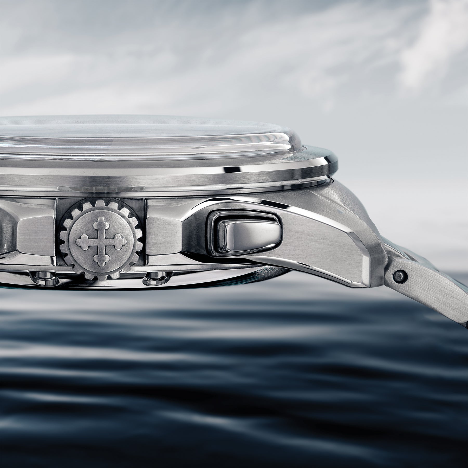 Engraved caseback secured by 8 screws