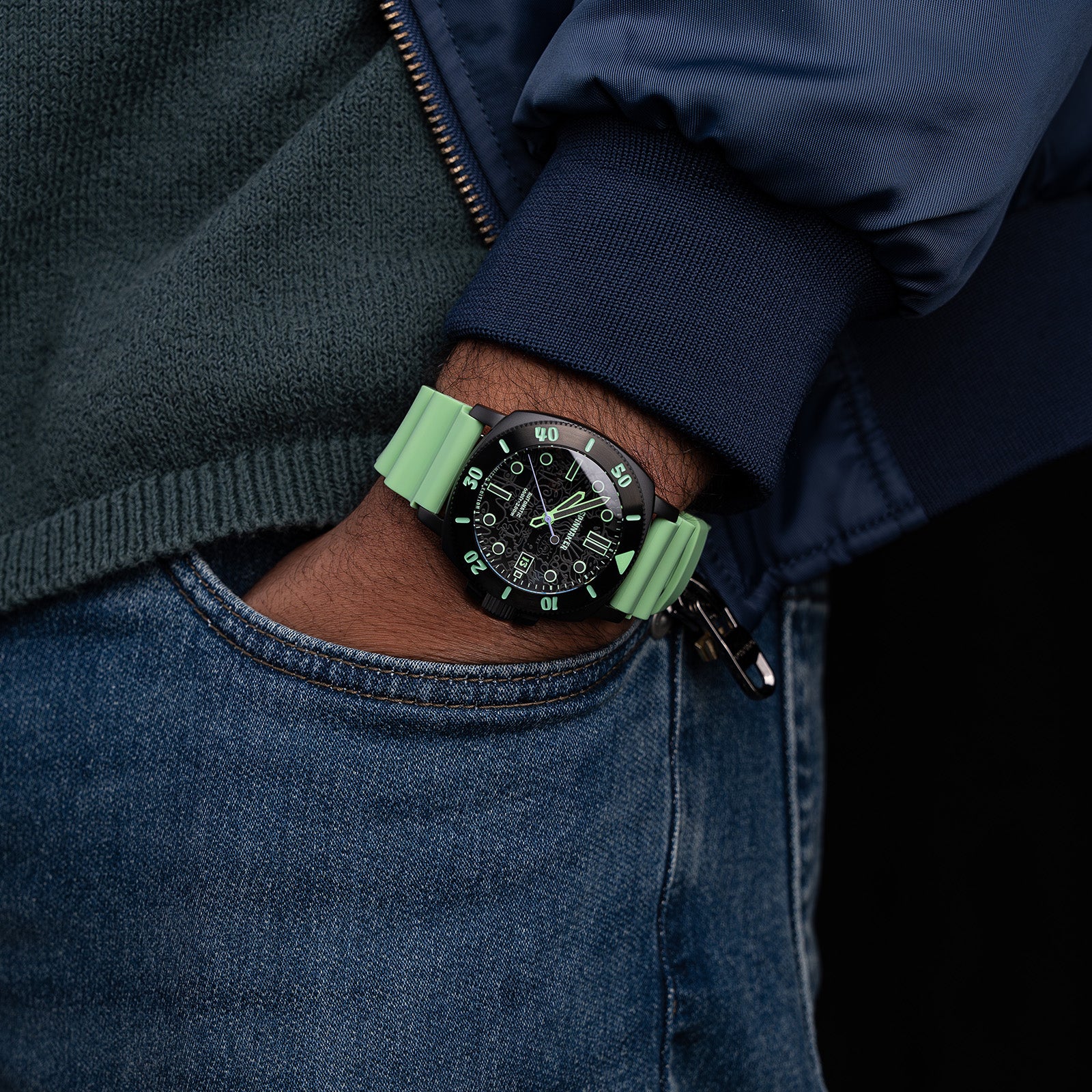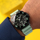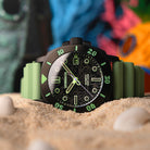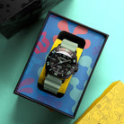 This exclusive collection offers four variants: SpongeBob, Patrick, Squidward, and Mr. Krabs. Each piece is defined by its tactical aesthetic, with a resilient rubber strap and a bezel font inspired by the classic style of Bikini Bottom. A subtle show-inspired graphic on the dial glows under UV light, a nod to hidden treasures of the deep.