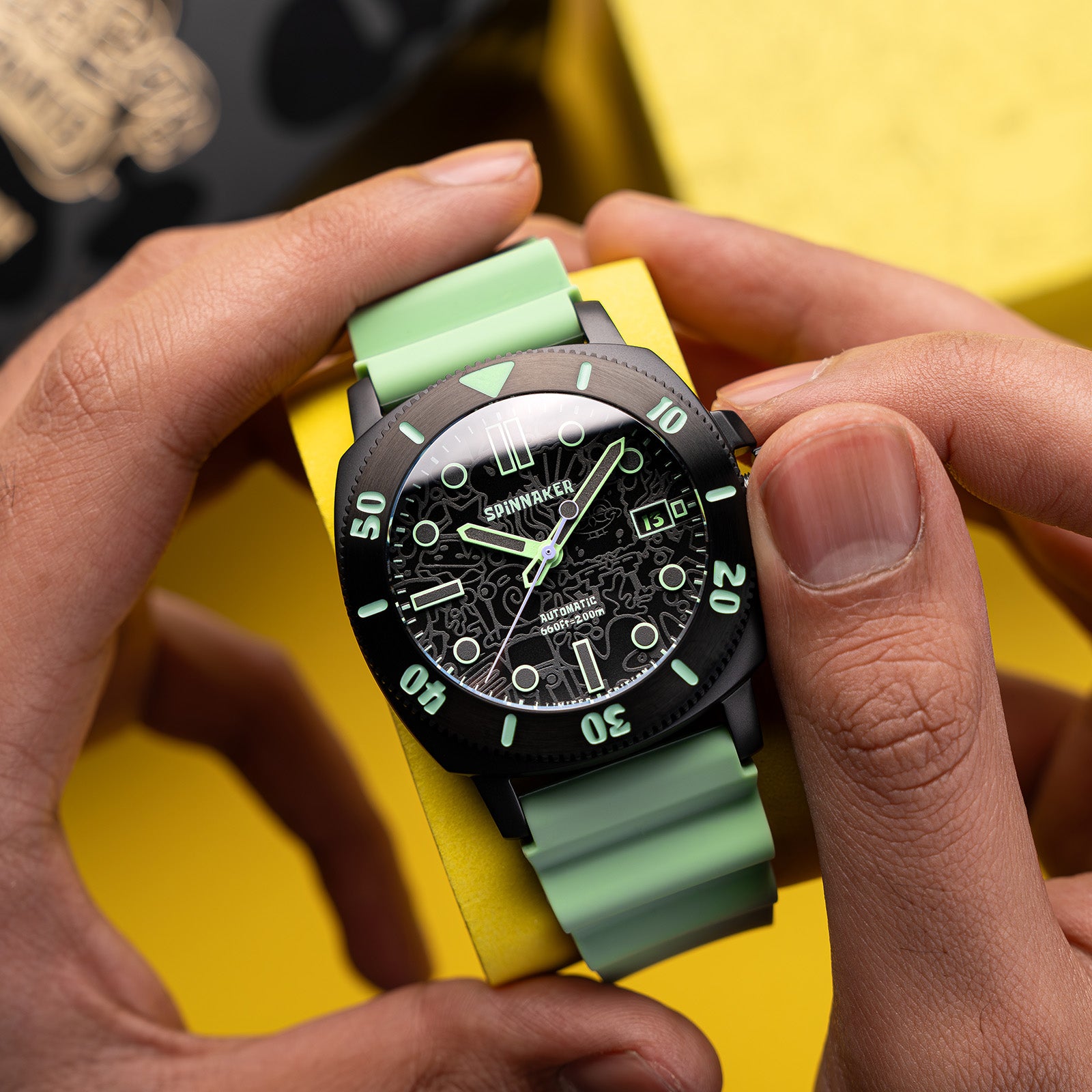 Spinnaker Watches presents the Hull Diver Automatic SpongeBob SquarePants Limited Edition, a tribute to the beloved characters of Bikini Bottom – reimagined through a lens of modern sophistication and tactical design.