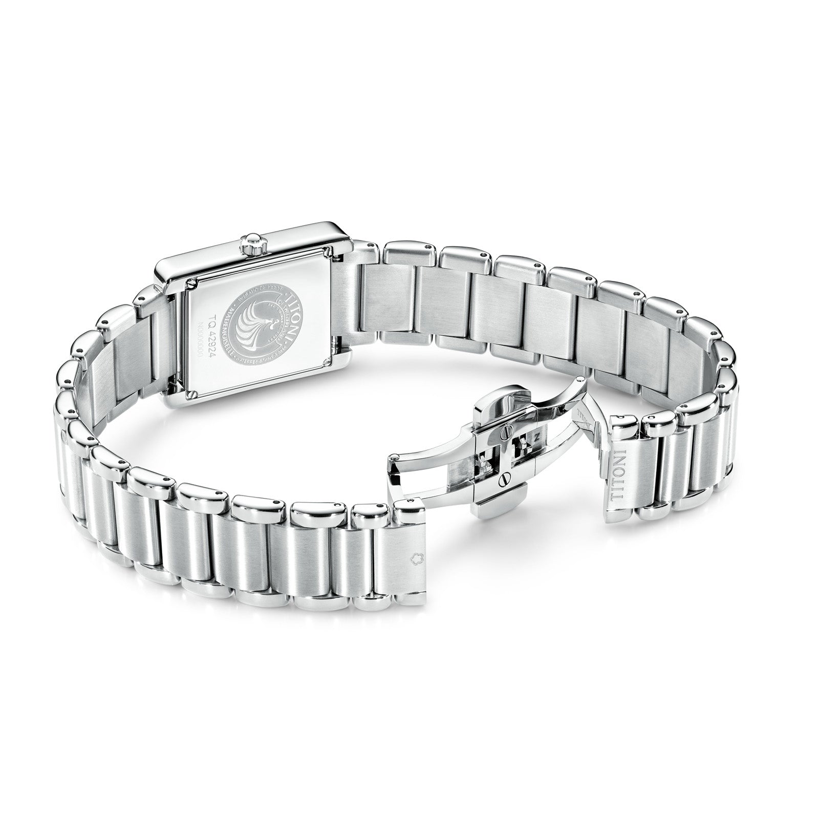 Stainless steel caseback secured by 4 screws