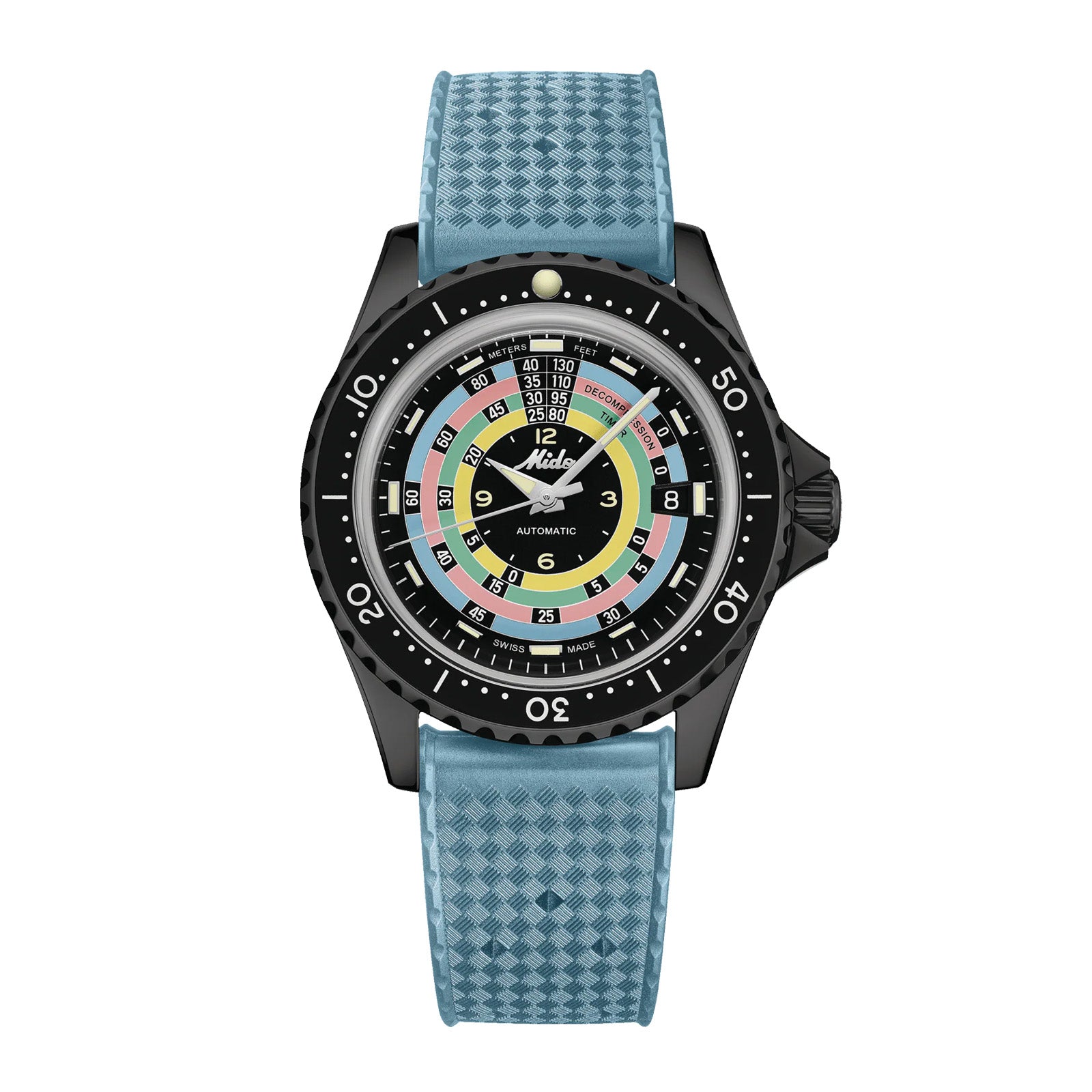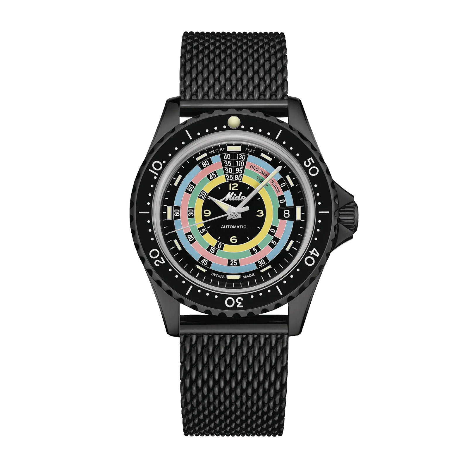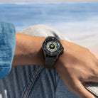 Bi-directional rotatable black aluminium bezel, with super LumiNova® dot at 12 o'clock