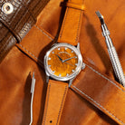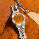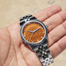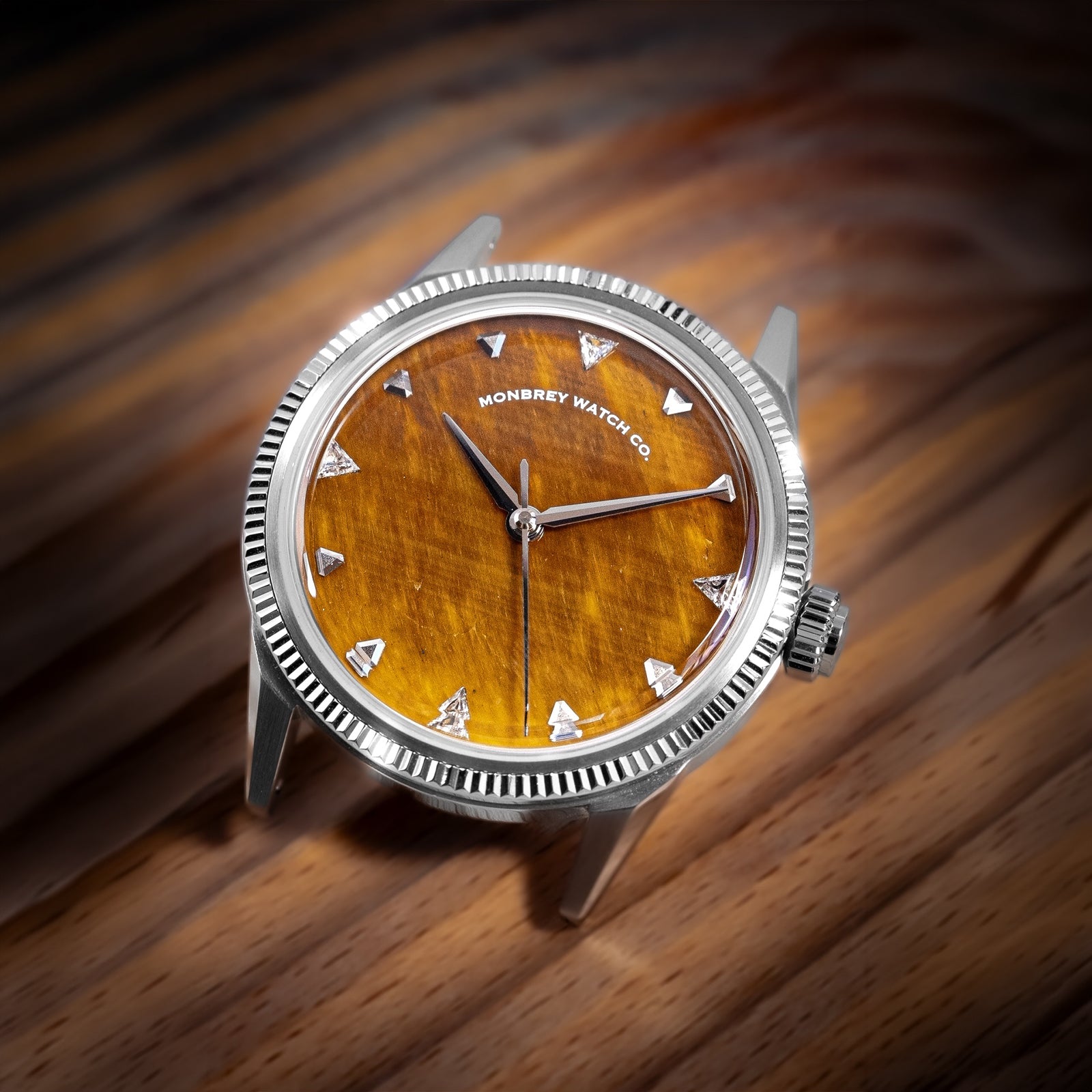 The Trinova in Tiger Eye Stone is a modern classic with a touch of quiet opulence, a piece that perfectly embodies the neo-vintage story. The warm, striated tiger eye dial provides a mesmerizing backdrop for the four triangular-cut DVS1 lab-grown diamonds, marrying vintage-inspired form with modern materials.